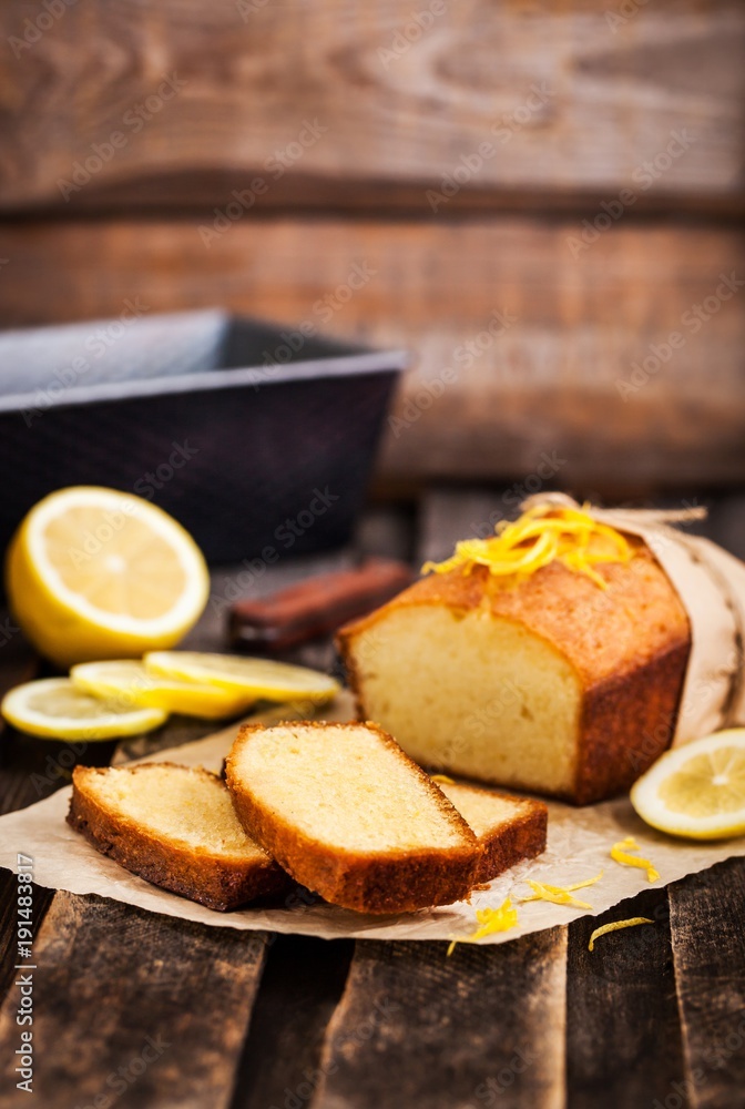 Classic Lemon Pound Cake On Rustic Wooden Background Stock Photo Adobe Stock